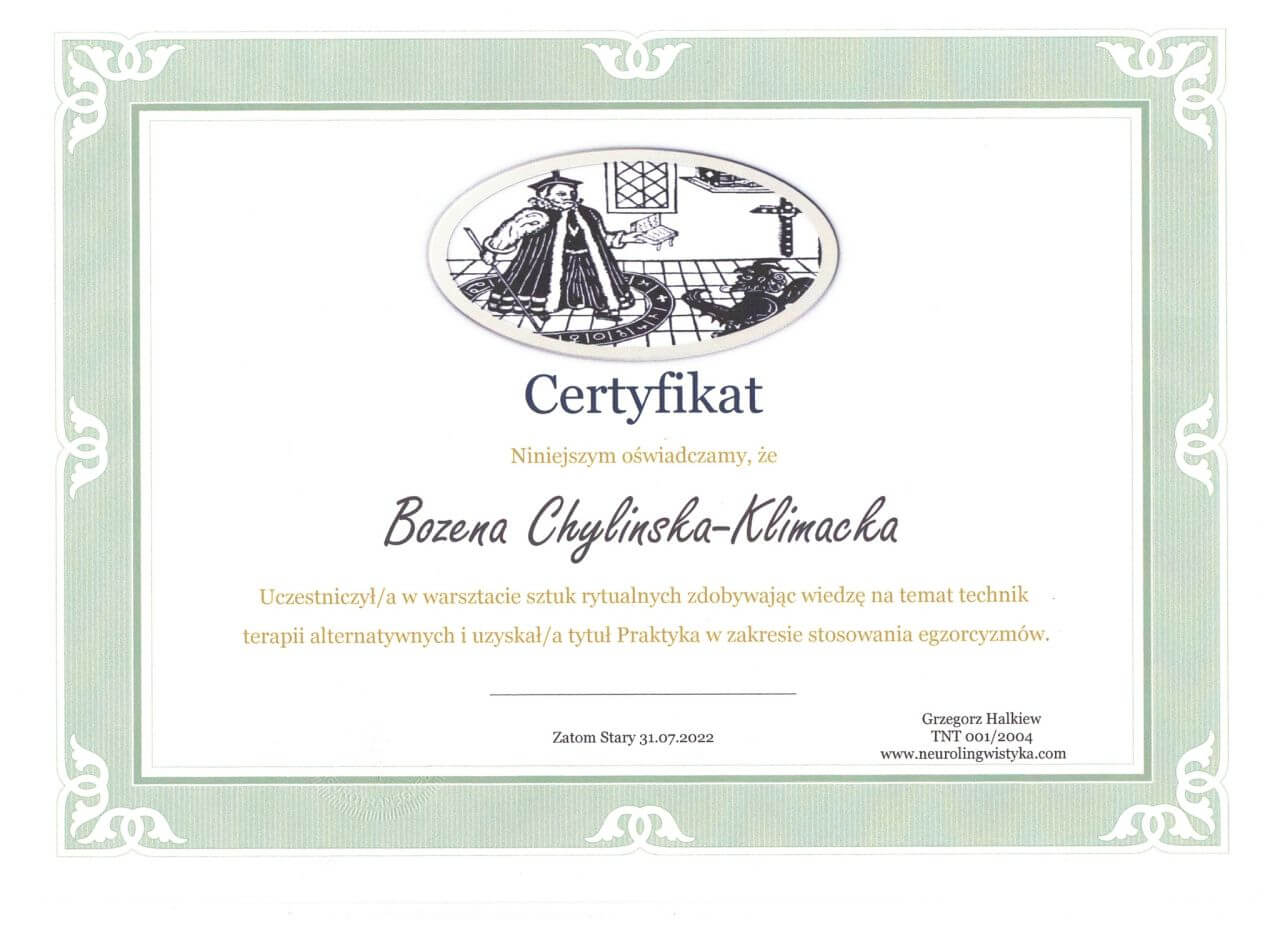 Dyplomy Zobacz stronę o mnie Strona główna O mnie Kalendarz wydarzeń Medytacje Zlot Wszechnicy Spotkania stacjonarne Kursy Reiki Warsztaty o czakrach Warsztaty o aurze Konsultacje indywidualne Kontakt Blog Dodaj opinię Polityka prywatności Regulamin Newsletter Opinie Facebook YouTube Instagram